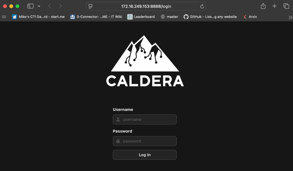 python3 server.pyAnd if all works well, you can log into your Caldera portal and get emulating! If you can get to the following portal but not log in, try a restart. More often than not that clears up any lingering issues :)