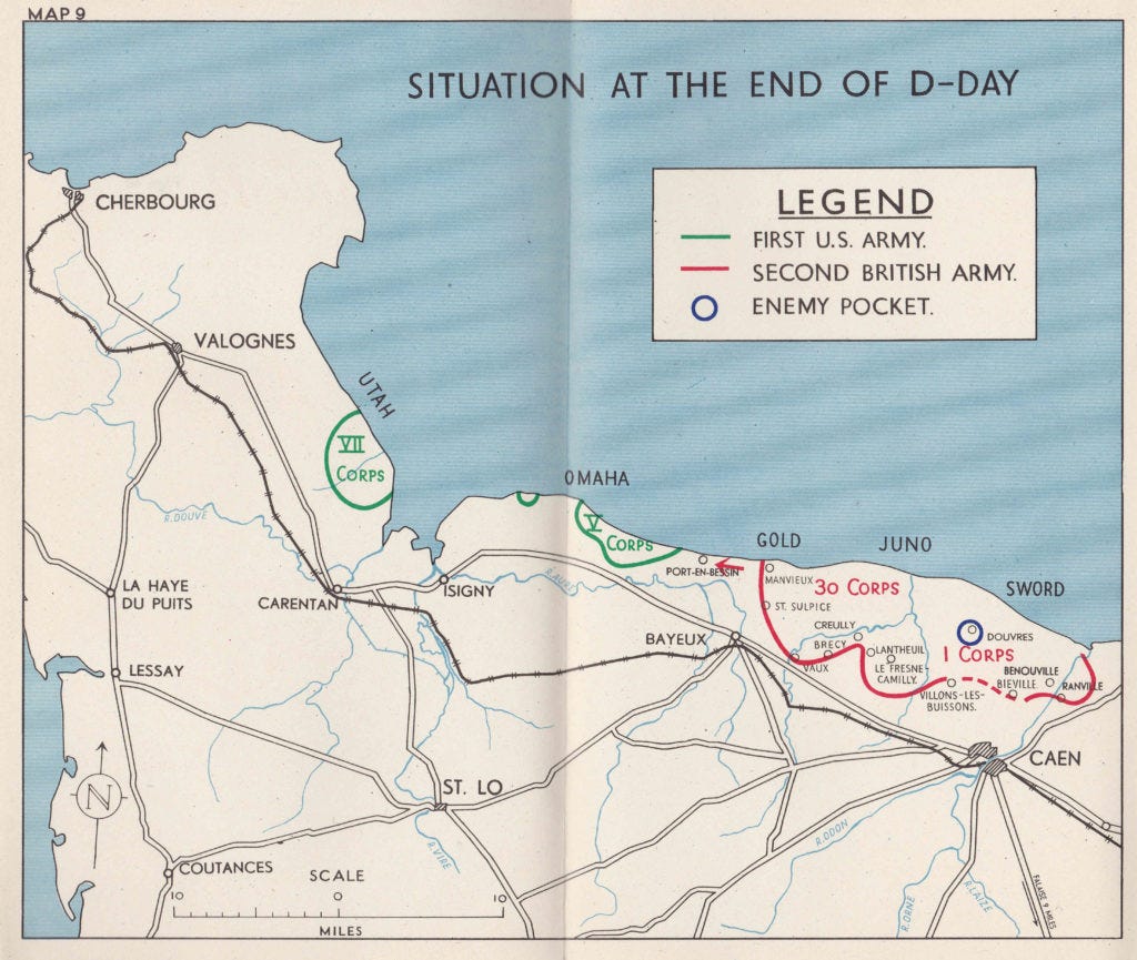 The German High Command missed some of those opportunities, or downplayed them altogether. It may be that they were still convinced that a larger landing may hit Calais, or that they were thrown off by the same chaos the Allies were when so many paratroopers and glider infantry were dropped way off course. One side improvised heavily, supported by the trust and preparation offered them by their command structure. The other was highly centralized, and inflexible. One shudders to think what would have happened if Hitler had not kept 3 Panzer divisions in reserve by his orders alone. Or if he had instilled more autonomy into his field generals to improvise and respond.