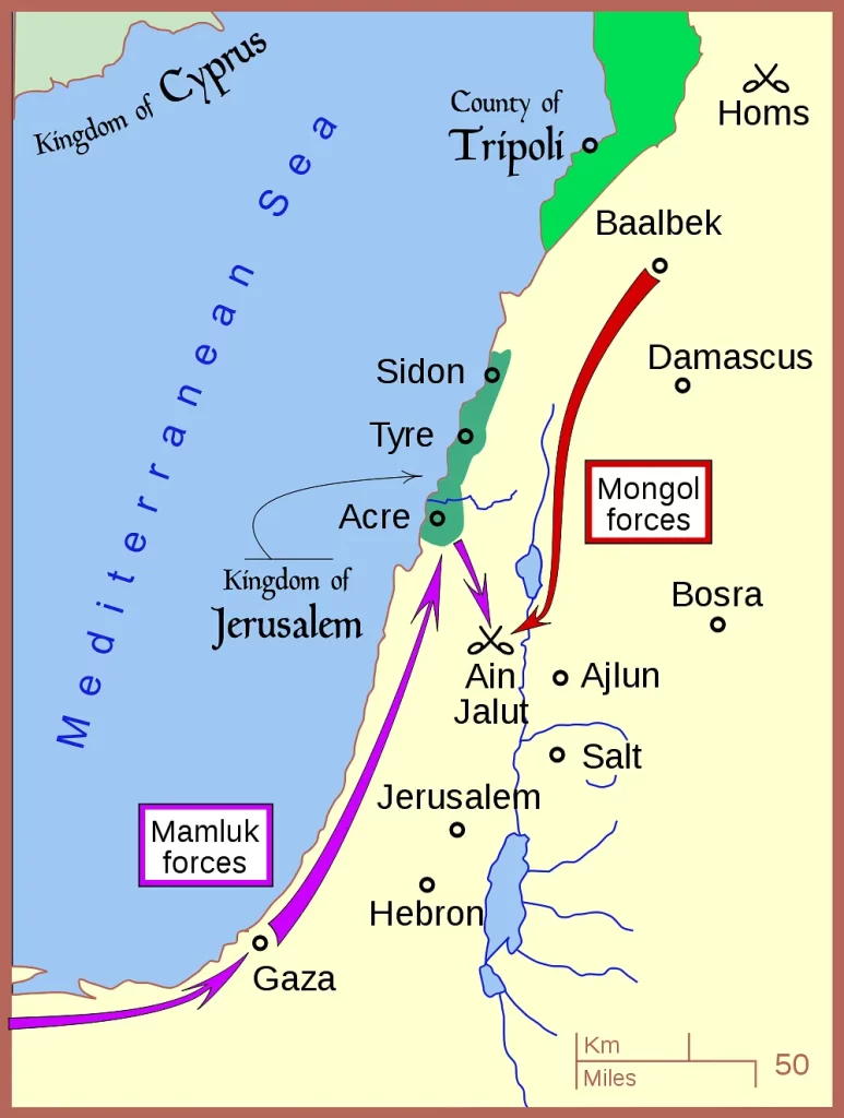 Consequently, it wasn't until the 1260 defeat by the Mamluk's of Egypt that someone cracked his descendants' code - 80 years and 3 generations of dominance on the battlefield! With forces consisting of former Mongol slaves who understood their prior masters' tactics instinctively, the Mamluk slave army repelled the Mongols at Ayn Jalut and notched the first real defeat of this relentless force. Their tactics were quite similar - hit-and-run tactics, feigned retreats, and ambushes leveraging geography.