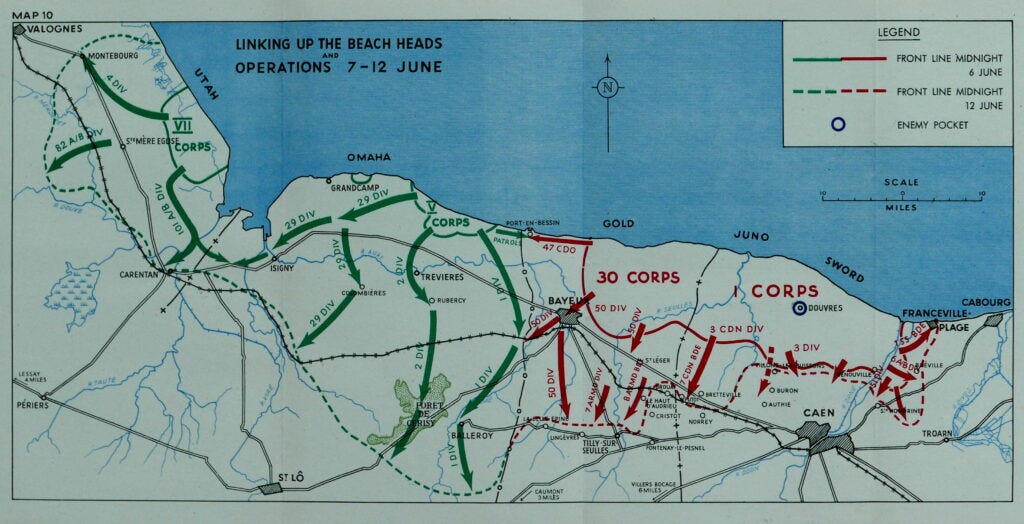 Each force in the invasion had multiple objectives laid out before them, both ranked by importance but also offering options to ensure room for improvisation. While the forces landing were largely in disarray, the decentralized command structure empowered junior officers and non-commissioned officers (NCOs - a.k.a. corporals, sergeants, and the like) to act on the objectives attainable, rather than be too prescriptive. In doing so, the attackers/invaders were able make inroads and pivoted to secure many objectives deemed vital to holding their beachhead. Because all leaders in the invading force were aware of the major objectives and their relative importance, they were able to piece together forces to take important gun positions, capture strategic crossroads, and eliminate fortifications that threatened the allied positions.