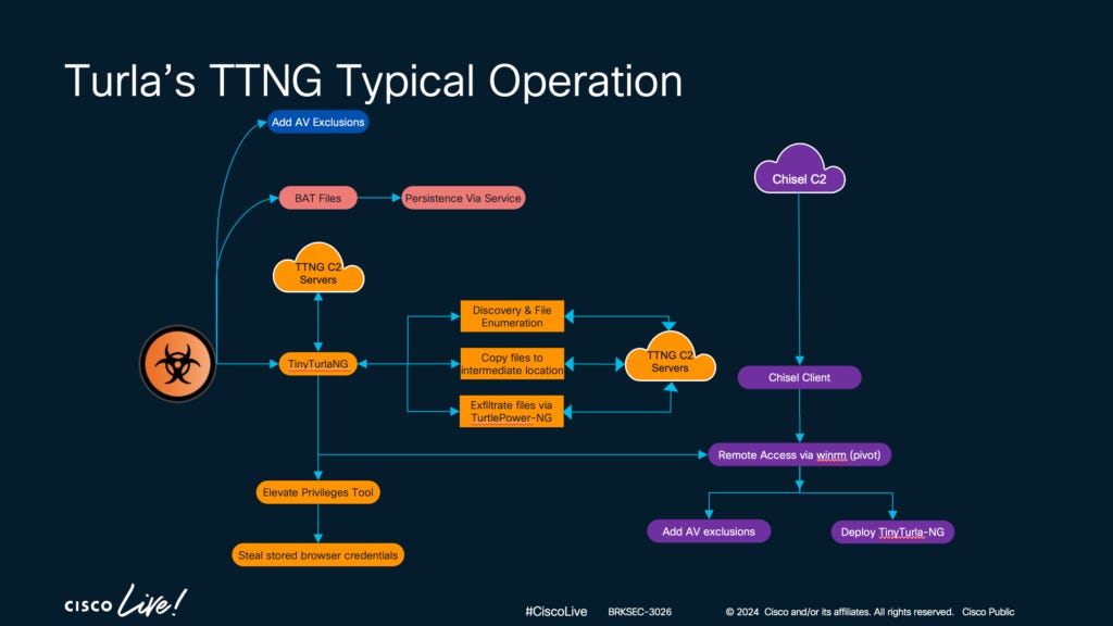 Cyber defenders don't have to fall victim to this. Look at TinyTurla NG's operational flow above. We're not moving troops or gaining & losing real estate here, we're defending digital environments where the line between success and failure comes down to using what you have. 43 mitigations exist in MITRE's ATT&CK database, and well over half of those are present in your environment's own systems (OS, infrastructure, etc.). Are they dormant? And of the detection or data sources, are you listening to them? Most of what even a major APT is using against us is detectable or preventable (or both). Disrupt them!
