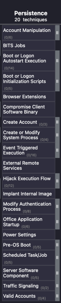 The modern operating systems are a marvel of complexity and options. Adversaries love to use all of these different capabilities to their advantage, and there is a plethora of options detailed in the ATT&CK Persistence tactic.