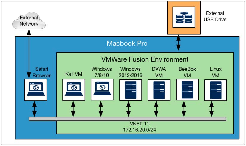 Your efficacy in testing will be greatly improved with some exposure and knowledge of a variety of platforms. There are some great resources such as Packt's own Building Virtual Pentesting Labs for Advanced Penetration Testing - Second Edition by Kevin Cardwell (Building Virtual Pentesting Labs for Advanced Penetration Testing, if you would like to dive into a more rigorous all-purpose pen testing range. In this section, we'll briefly discuss the sandbox or laboratory that we'll be using in this book to rehearse our pen testing approaches.
